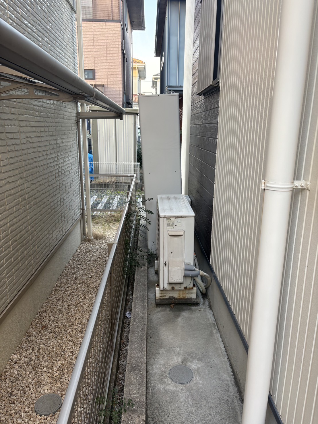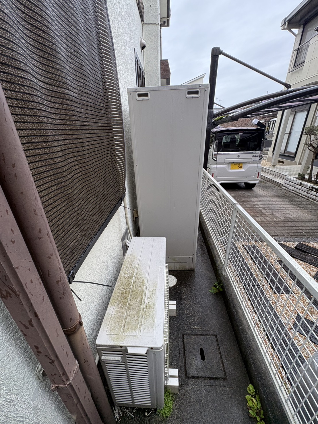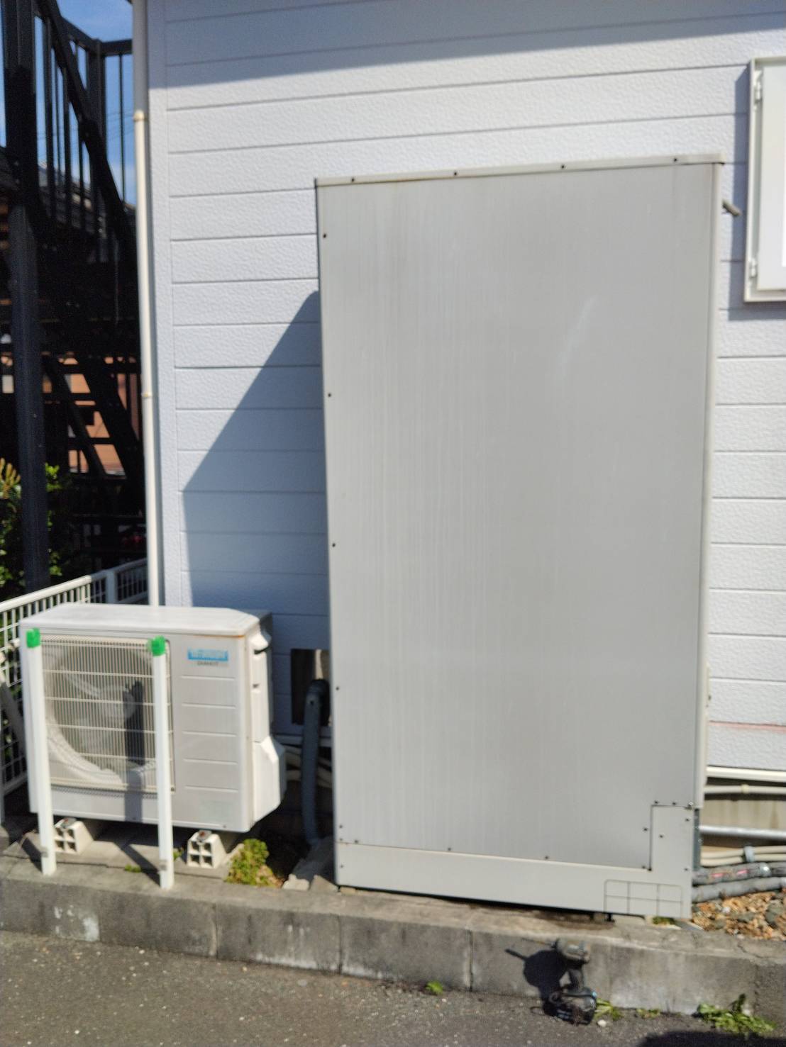 今回は、交換前と同じ三菱電機製のエコキュートに交換。植栽を傷つけないようにスペースを作りながら設置さ...