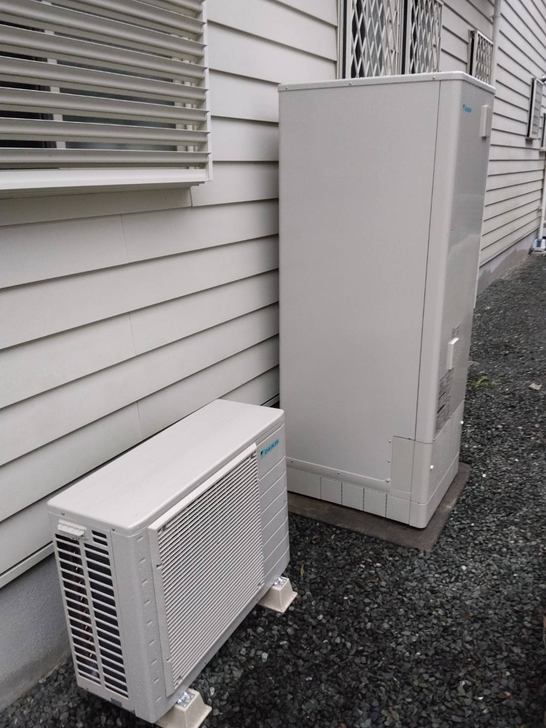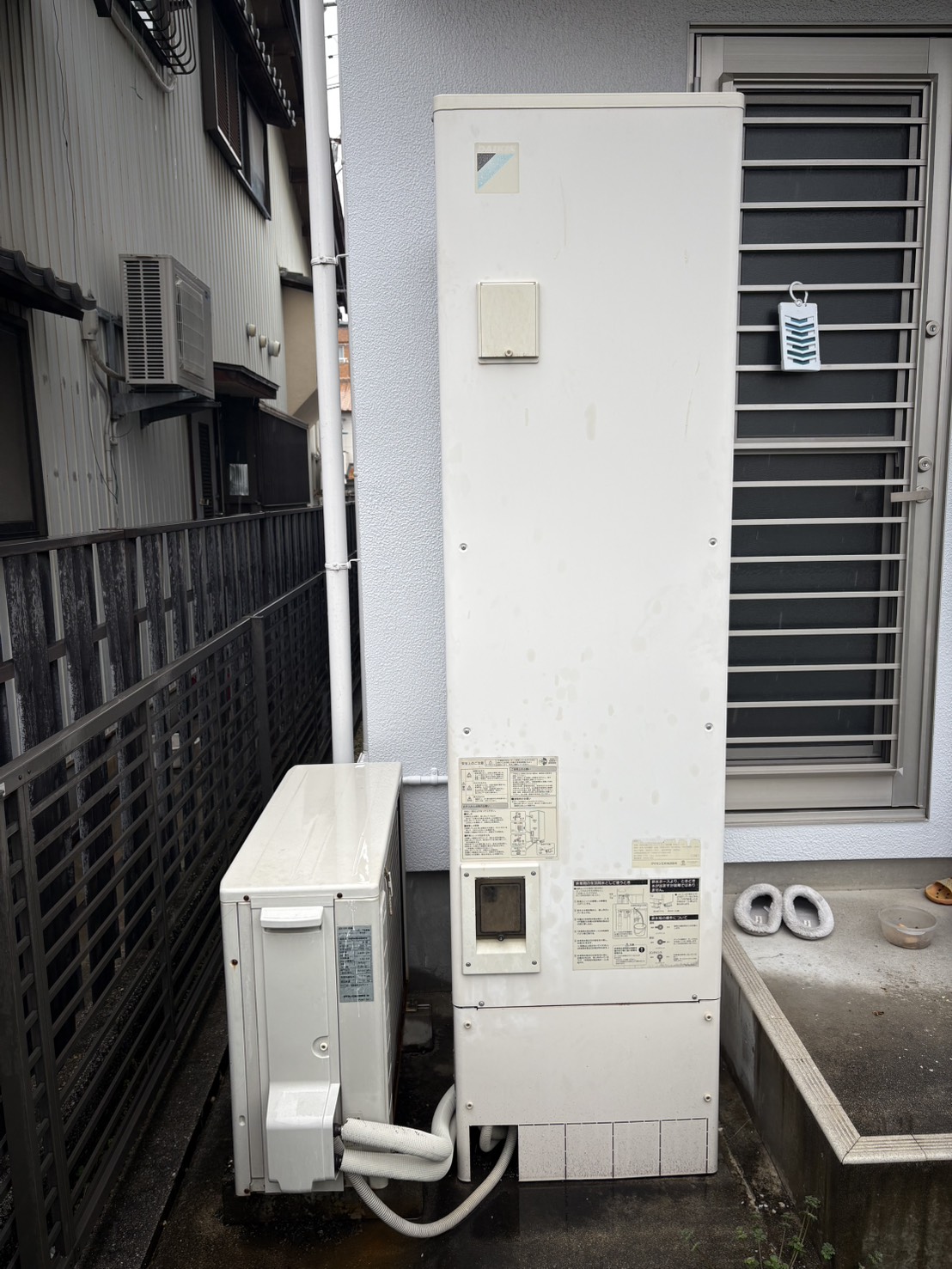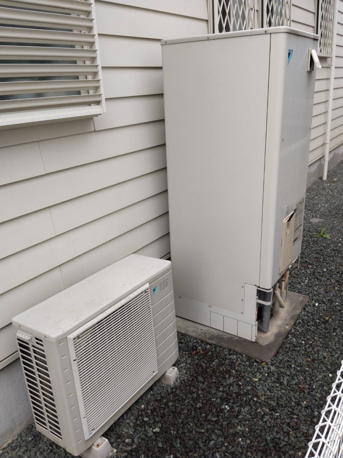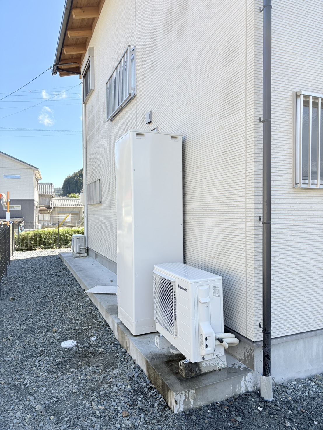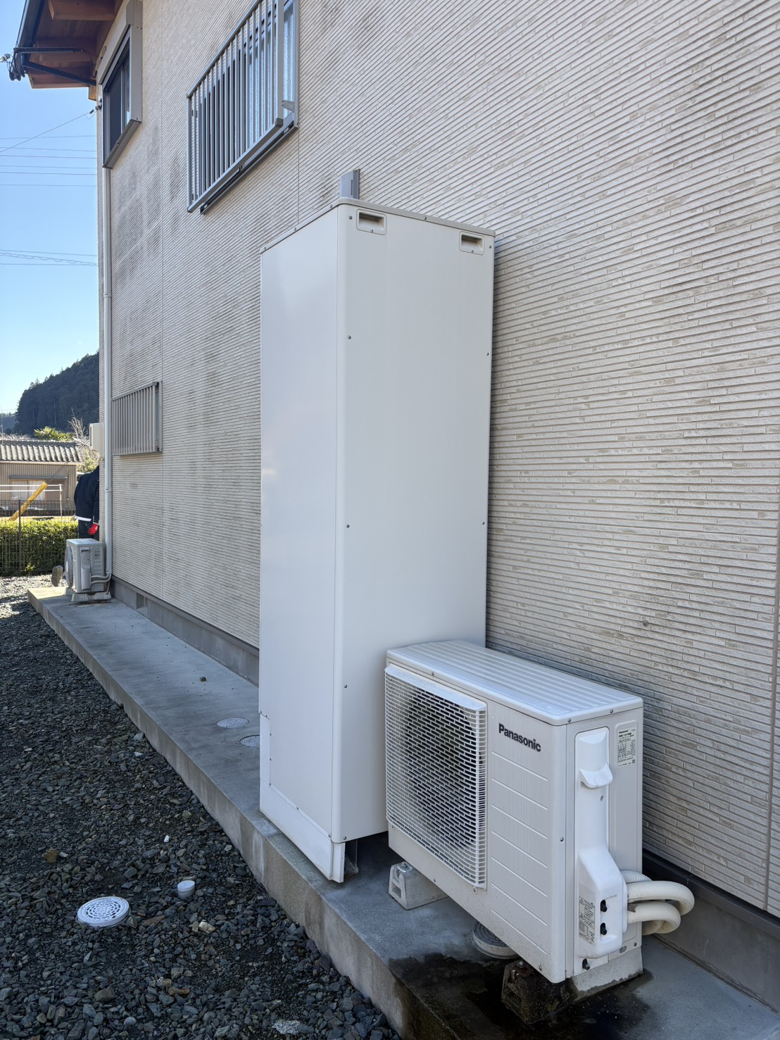 今回は長府製エコキュートからパナソニック製エコキュートへ交換。夕暮れ時の作業でしたが、このくらいの明...