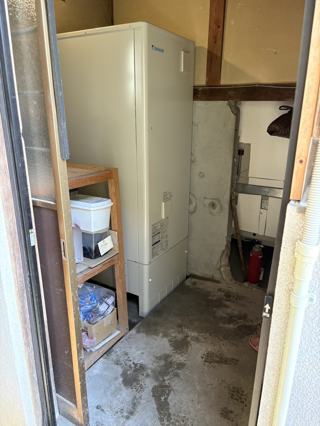 ご依頼主様と相談して、容量を550Lから460Lに下げて設置させていただきました。お子様が一人暮らし...